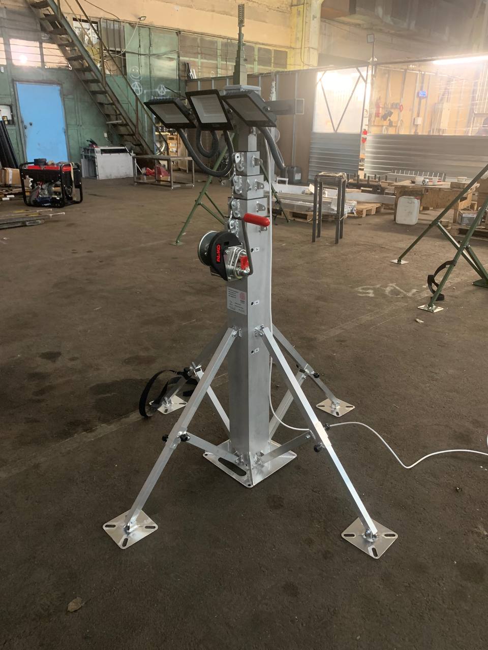 Наша телескопічна алюмінієва щогла – це сучасне та надійне рішення для освітлення будівельних майданчиків. Завдяки можливості встановлення прожекторів потужністю від 450 до 1400 Вт, вона забезпечує ефективне освітлення навіть у складних умовах. Міцна конструкція та лебідочний механізм дозволяють швидко та безпечно розгортати систему освітлення. Основні переваги: ✅ Міцна алюмінієва конструкція. Виготовлена з високоякісного алюмінієвого сплаву, що забезпечує легкість та довговічність. ✅ Лебідочний механізм. Дозволяє легко піднімати та опускати обладнання, можливе використання ручної або електричної лебідки. ✅ Висока вантажопідйомність. Підходить для встановлення прожекторів загальною потужністю від 450 до 1400 Вт. ✅ Стійкість до погодних умов. Щогла витримує вітрове навантаження до 22 м/с, що забезпечує безпечну експлуатацію. ✅ Швидкий монтаж. Комплектується анкерною системою та опорними ногами для стабільної установки. ✅ Компактність при транспортуванні. Легка розбірна конструкція займає мінімум місця при зберіганні та перевезенні. ✅ Колір: стандартний – хакі (RAL 6003), можливе фарбування на замовлення Комплектація: 🛠️ Телескопічна алюмінієва щогла 🛠️ Верхівка для кріплення антен або іншого обладнання 🛠️ Кілочки для додаткової фіксації 🛠️ зручні ручки для переносу Ця щогла – ідеальне рішення для будівельних майданчиків, де необхідне потужне та мобільне освітлення, що забезпечить безпеку та ефективність робіт у будь-який час доби.